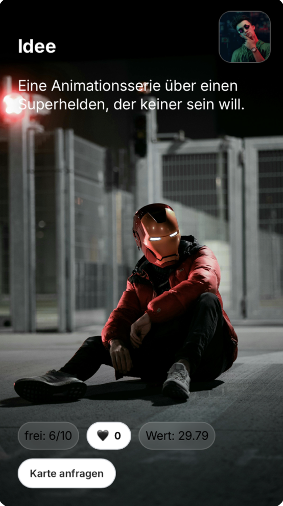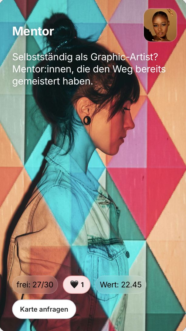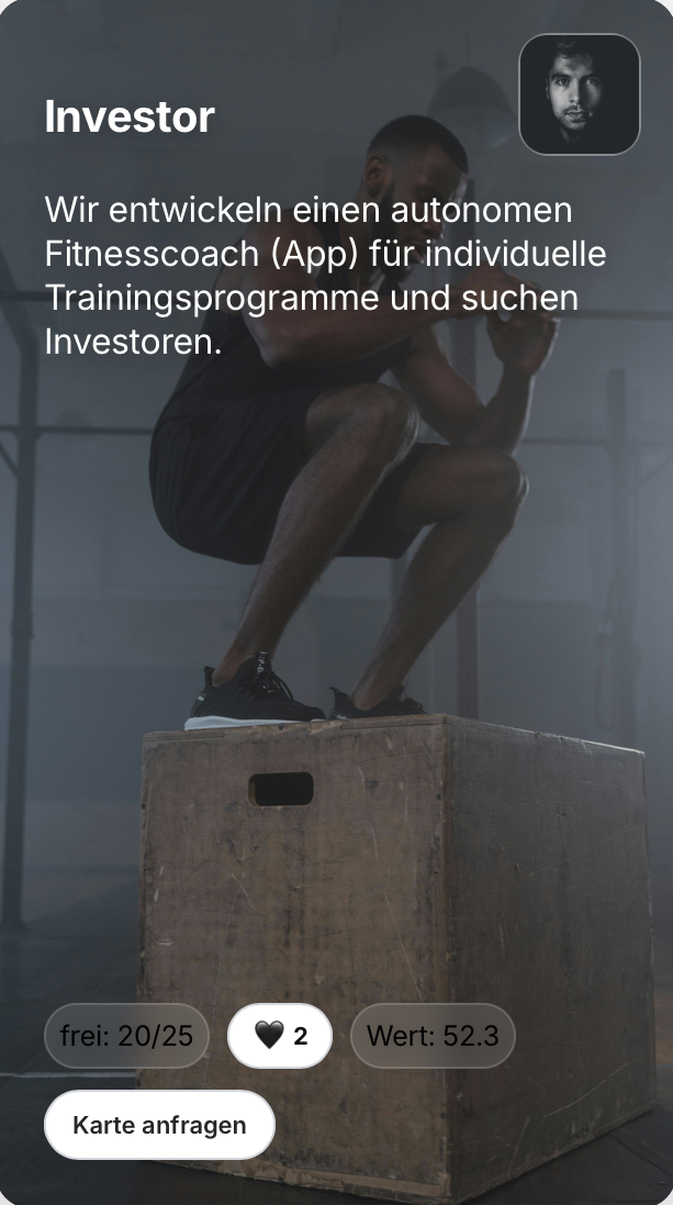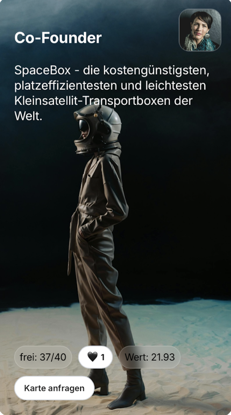 Ob Gründer:in, Co-Founder, Mentor:in, Investor:in, Kreative:r oder Startup-Enthusiast – CARDS bringt dich mit den Menschen zusammen, die wirklich zu deinem Projekt passen. Jede Card steht für ein klares Thema und zeigt auf einen Blick, worum es geht und wer dahinter steht.